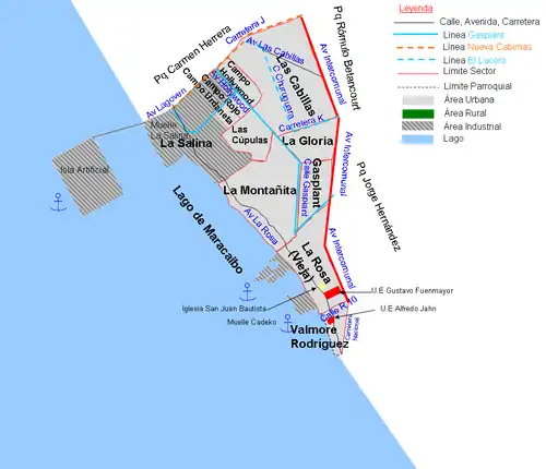 Las Cabillas cuenta entre sus calles principales Las Cabillas, Churuguara y Paraíso, las cuales todas comienzan en el distribuidor Nuevo Juan. La Churuguara tiene algunos reductores de velocidad, la Paraíso es la que pasa por detrás de Campo Hollywood. Del lado de las carreteras J y K tiene algunos centros comerciales y locales, por dentro es una zona residencial. Las Cabillas como otros sectores de Cabimas tiene pozos petroleros al lado de las casas.