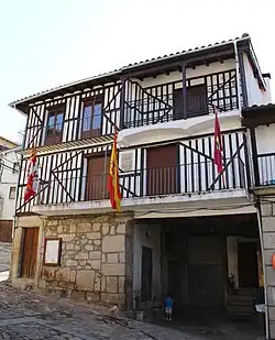 Además de las casas, las plazas y las calles a las que ellas dan, constituyen la fisonomía de la arquitectura popular serrana. Tanto las unas como las otras están empedradas con piedras de granito, lo que otorga su personalidad a estos espacios; en ocasiones, grandes lanchas graníticas forman verdaderas roderas en calles principales. No faltan, en los más diversos rincones, cruceros de piedra elevados a veces y circuidos por unas escalerillas de granito. Estos forman parte de un viacrucis que culmina en una preciosa representación del calvario con tres cruces donde la central lleva grabados los instrumentos de la pasión de Cristo: los clavos, las tenazas, el látigo... Otro elemento con el que nos encontramos son las fuentes, que manan por sus caños de continuo y que otorgan al fluir del tiempo ese sonido regular y monótono. Rumor de fuentes, tan característico de la sierra de Francia. Y balcones cubiertos por tiestos y macetas cuando llega el buen tiempo; geranios con los diversos tonos del rojo y con el blanco y el verde, que dan vivacidad a las calles y plazas. Dentro de este urbanismo, tienen especial importancia el soportal, presente en algunas plazas sobre todo, como cobijo y recinto de intimidad. Y los pasadizos cubiertos. Y los rincones escondidos y que parecen no existir. ¿Y los poyos? Son bloques de granito, adheridos a la fachada de la planta baja de cada casa, donde las gentes se sientan a tomar el fresco y el aire durante el buen tiempo y donde cosen las mujeres en las largas tardes de verano. Contribuyen a formar estampas muy serranas, que aún se conservan muy vivas. Todos estos elementos constituyen una invitación para un demorado recorrido en el que el viajero irá llenando de continuas sorpresas sus ojos, si está dispuesto a dejarse cautivar.