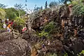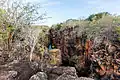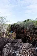 Las Grietas está formada por fisuras de lava que forman dos paredes gigantes atravesadas por un brazo de agua salobre filtrada desde la parte alta donde se mezcla con el agua del mar.[1]