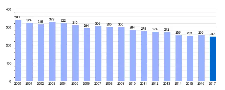 | Gráfica de evolución demográfica de Las Machorras entre 2000 y 2017 |