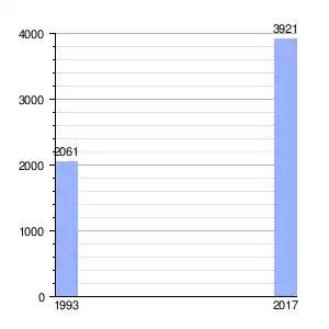 | Gráfica de evolución demográfica de Las Malvinas entre 1993 y 2017 |