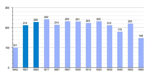| Gráfica de evolución demográfica de Las Parras de Martín[2] entre 1842 y 1960 |