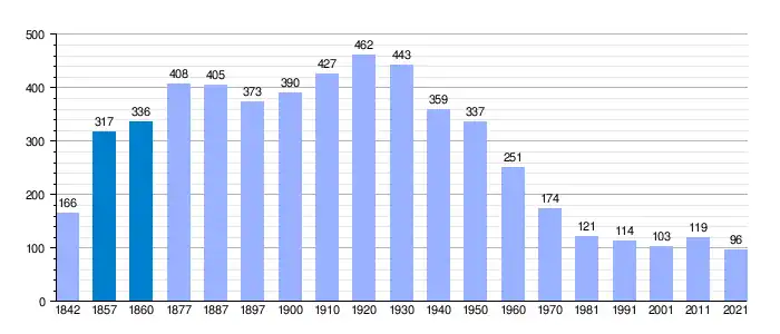 | Gráfica de evolución demográfica de Las Pedrosas[4] entre 1842 y 2021 |