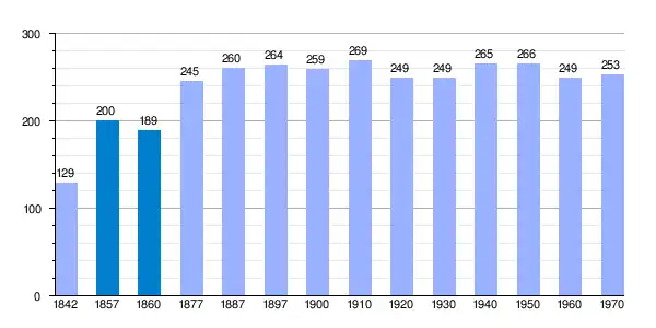 | Gráfica de evolución demográfica de Las Torres[5] entre 1842 y 1970 |