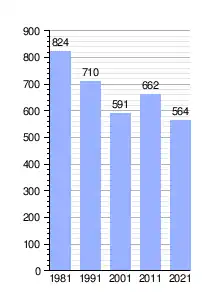 | Gráfica de evolución demográfica de Las Tres Villas[7] entre 1981 y 2021 |