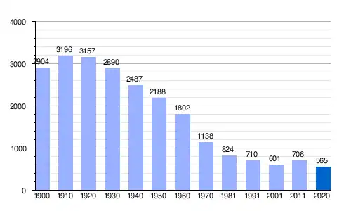 | Gráfica de evolución demográfica de Las Tres Villas entre 1900 y 2020 |