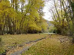 En cuanto a la vegetación predominan los álamos, destacando la densa alameda que discurre en pleno cauce del barranco; los eucaliptos, adelfas, taray, retamas, y una gran diversidad de matorral. Dentro de su fauna, predominan el jabalí, el zorro y la cabra montesa.