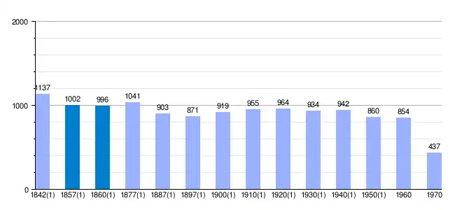 | Gráfica de evolución demográfica de Valeria[5][6] entre 1842(1) y 1970 |