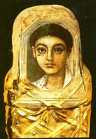 ![]() Un retrato de El Fayum, reproducido en la cubierta de la edición francesa. | |||||