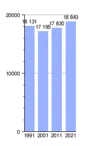 | Gráfica de evolución demográfica de Lasarte-Oria[9] entre 1991 y 2021 |