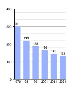 | Gráfica de evolución demográfica de Lascellas Ponzano[5] entre 1970 y 2021 |
