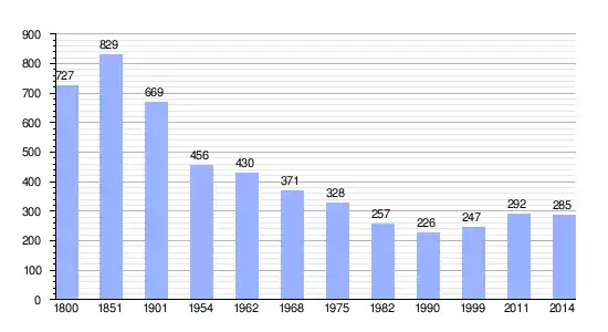 | Gráfica de evolución demográfica de Lasse entre 1800 y 2014 |