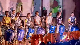 ![]() Latasónica tocando en vivo con cotidiáfonos. | ||