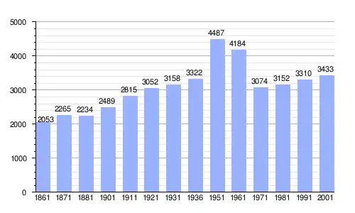 | Gráfica de evolución demográfica de Laterina entre 1861 y 2001 |