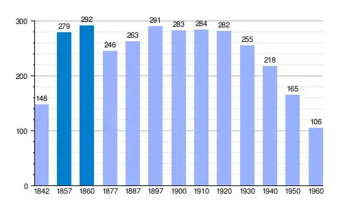 | Gráfica de evolución demográfica de Latre[1] entre 1842 y 1960 |