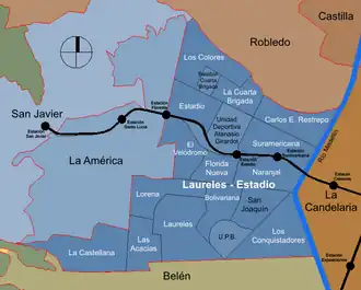 La Comuna n.º 11 Laureles - Estadio es una de las 16 comunas de la ciudadcolombiana de Medellín, capital del Departamento de Antioquia. Se encuentra ubicada en la zona centro-occidental. Limita por el norte con la Comuna n.º 7 Robledo, límite establecido por la quebrada La Iguaná. Por el oriente con la Comuna n.º 10 La Candelaria, límite determinado por el Río Medellín. Por el sur con la Comuna n.º 16 Belén, a partir de las calles 32 D y 33 y por el occidente con la Comuna n.º 12 La América. Esta comuna se desarrolló de manera planeada, generando nuevos conceptos urbanos muy innovadores para su época, llegándose a conformar como un importante patrimonio urbano de la ciudad, el cual es necesario valorar y proteger. La comuna alberga, en su mayoría, población de estratos acomodados de la ciudad.PlPLAN DE DESARROLLO LOCAL DE LA COMUNA 11 Laureles - Estadio 2007</ref>
