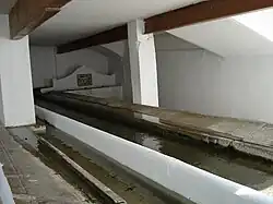 Se trata de un local al aire libre, cubierto y de planta cuadrangular. En lo que podría considerarse como eje central existe un elemento con forma de canal asimétrico con una partición intermedia y pequeños canalillos sobre unos bancos inclinados con estrías labradas. Los soportes son de hormigón y vigas de madera. Tres de sus cuatro lados están cerrados por parámetros de mampostería ordinaria.