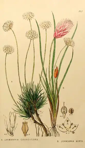 - Laxmannia brachyphylla F.Muell. – Stilted Paper-Lily[4]