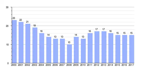 | Gráfica de evolución demográfica de Lazado[2] entre 2000 y 2017 |