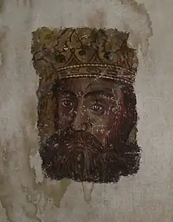 ![]() Fresco del príncipe Lazar Hrebeljanović en el monasterio de Ravanica, Serbia. | ||