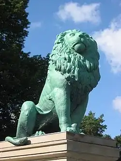 En 1874 se erigió una copia de zinc del monumento en el parque público Schweiz, cerca de la asociación de veteranos de guerra Colonie Alsen, en Berlín. Este monumento fue costeado por el banquero Wilhelm Conrad. El camino que conduce a la estatua recibió el nombre apropiado de Straße zum Löwen (Camino del León).[4] En la copia, los relieves de los cuatro oficiales daneses fueron sustituidos por una sola imagen del oficial alemán, el príncipe Federico Carlos de Prusia, invirtiendo así el significado del monumento original.[3]En 1938, la prensa danesa informó de la existencia de la copia del monumento histórico y, casi al mismo tiempo, la copia de zinc fue trasladada a Heckeshorn, cerca de Wannsee,[4] donde permanece en la actualidad, cerca del edificio que albergaría lo que más tarde se conocería como la Conferencia de Wannsee. La estatua de Berlín fue restaurada en 2005.