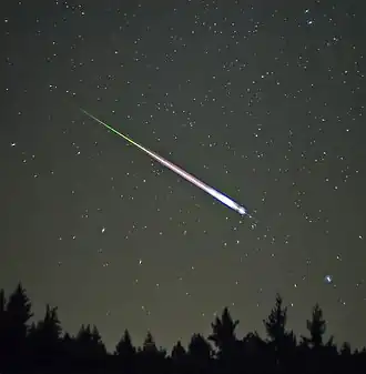 Las Leónidas son una prolífica lluvia de meteoros anual asociada con el cometa 55P/Tempel-Tuttle, y también son conocidas por sus espectaculares tormentas de meteoros que ocurren aproximadamente cada 33 años.[1] Las Leónidas reciben su nombre por la localización de su radiante en la constelación de Leo, ya que los meteoros parecen irradiar desde ese punto en el cielo. El nombre se deriva del griego y del latín, con el prefijo Leo- en referencia a la constelación, y el sufijo -idas indicando descendencia o pertenencia.[2]