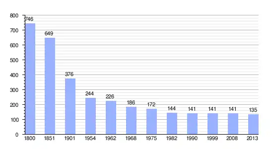 Los datos demográficos contemplados en este gráfico de la comuna de Le Petit-Abergement[4] se han cogido de 1800 a 1999 de la página francesa EHESS/Cassini, y los demás datos de la página del INSEE.[5]