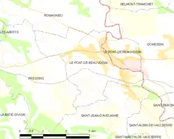 No debe confundirse con Le Pont-de-Beauvoisin, situada en Saboya. Las dos ciudades están separadas por el río Guiers.[3]