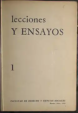 <ref>no válida; el nombre «index» está definido varias veces con contenidos diferentes - ↑ a b c Revista Lecciones y Ensayos, Departamento de Publicaciones, Facultad de Derecho, Universidad de Buenos Aires, Número 1 (1956). P. 5. ISSN 0024-00791