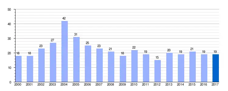 | Gráfica de evolución demográfica de Leciñana de Tobalina entre 2000 y 2017 |