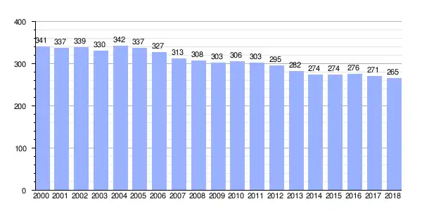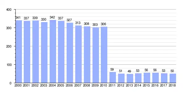 | Gráfica de evolución demográfica de Ledesma (parroquia) entre 2000 y 2018 |