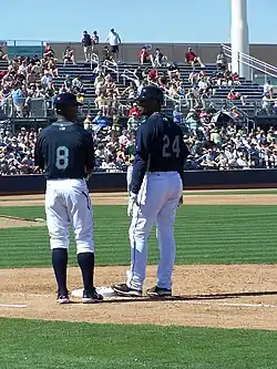 ![]() Tinsley (izquierda) hablando con Ken Griffey Jr. | ||