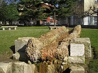 - ↑ CIL II 2477 = 5616: Imp(eratori) Caes(ari) Ve[sp(asiano) Aug(usto) pony(ifici)]/ max(imo) trib(unicia) pot(estate) [X imp(eratori) XX p(atri) p(atriae) co(n)s(uli) IX] / Imp(eratori) Vesp(asiano) Caes(ari) Au[g(usti) f(ilio) pont(ifici) trib(unicia) pot(estate)]/ VIII imp(eratori) XIIII co(n)[s(uli) VII(?)]/ ------/ Gaio (sic) Calpetano Ra[ntio Quirinali]/ Val(erio) Festo leg(ato) A[ug(usti) pr(o) pr(aetore)]/ D(ecimo) Cornelio Ma[ciano leg(ato) Aug(usti)]/ L(ucio) Arruntio Max[imo proc(uratori) Aug(usti)]/ Leg(ionis) VII Gem(inae) [Fel(icis)]/ civitates [X] / Aquiflavien[ses ---]/ Bibali Ceel[Eerni ---]/ Interamic[i ---]/ Quaque[r]ni Ta[magani]