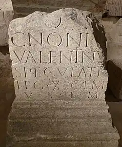 - ↑ CIL II 4176 = CIL II214, 1076: ------ miles(?)] / leg(ionis) X Gem(inae) / h(ic) s(itus) e(st)