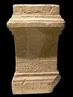 - sacrum Caius Valerius Carus miles legionis X Geminae votum solvit libens merito. Lugo (Lucus Augusti), . Hisp. Epi. 19118.
