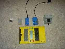El bloque RCX es la parte central del Lego Mindstorms, ya que aquí se encuentra toda la parte lógica y electrónica que permite la mayoría de las acciones del robot, almacenándose hasta 5 programas que se pueden cargar en su memoria interna, y guardándose allí el firmware básico para el control de los distintos dispositivos que se pueden conectar al bloque.