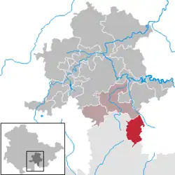 Se encuentra ubicado al sur de la ciudad de Weimar, y a poca distancia al norte de la frontera con el estado de Baviera.