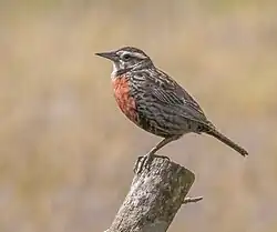 La loica común, pecho colorado, lloica o milico (Leistes loyca)[2][3][4][5] es una especie de ave paseriforme de la familia Icteridae propia del Cono sur sudamericano. Se identifica por su gran mancha roja en su pecho.