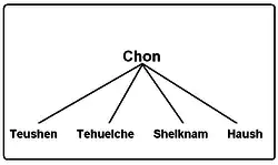 Más especulativa aún es la clasificación de Joseph Greenberg, bastante discutida en la actualidad,[5] las lenguas chon son un subrupo de las lenguas amerindias del grupo andino meridional.