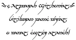 - ↑ Smith, Arden R. (2015). «Writing Systems». The Tolkien Estate. Archivado desde el original el 14 de abril de 2021. Consultado el 26 de enero de 2021.