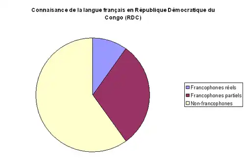 En la ciudad capital, Kinshasa, el 67 % de la población sabe leer y escribir francés, y el 68,5 % puede hablarlo y entenderlo.[2]