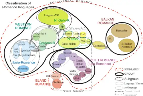 - ↑ Vid Von Wartburg: La fragmentación lingüística de la Romania Gredos Madrid, 1952