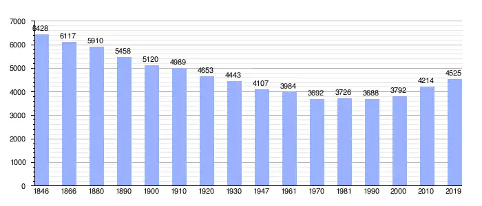 Todos los datos históricos relativos al actual municipio, el siguiente gráfico refleja su evolución demográfica, incluyendo municipios después de efectuada la fusión el 1 de enero de 1977.