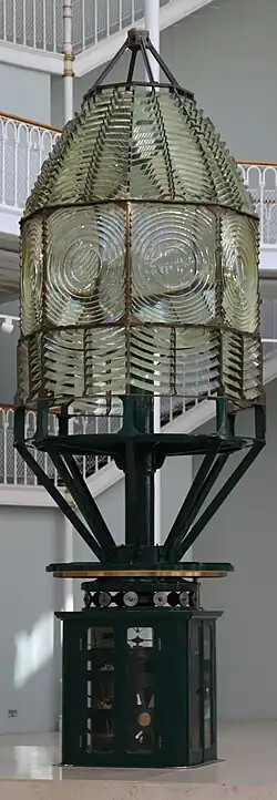 Las lentes Fresnel de vidrio de alta calidad se utilizaron en los faros, donde se consideraron de vanguardia a fines del siglo XIX y hasta mediados del siglo XX; la mayoría de los faros han retirado del servicio las lentes de vidrio Fresnel y las han reemplazado por balizas aerodinámicas mucho menos costosas y más duraderas, que a menudo contienen lentes de plástico Fresnel. Los sistemas de lentes Lighthouse Fresnel generalmente incluyen elementos prismáticos anulares adicionales, dispuestos en cúpulas facetadas encima y debajo del Fresnel planar central, para captar toda la luz emitida por la fuente de luz. La trayectoria de la luz a través de estos elementos puede incluir una reflexión interna, en lugar de una simple refracción.en el elemento plano de Fresnel. Estos lentes conferían muchos beneficios prácticos a los diseñadores, constructores y usuarios de faros y su iluminación. Entre otras cosas, las lentes más pequeñas podrían caber en espacios más compactos. Una mayor transmisión de luz a distancias más largas y patrones variados hicieron posible triangular una posición.
