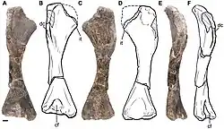 Los dientes anteriores eran en forma de cuchara, con la superficie exterior convexa (prominencia), la interior cóncava (ahuecado), similar a la de los saurópodos. La textura superficial, sin embargo, es más similar a la de los sauropodomorfos basales.[2]