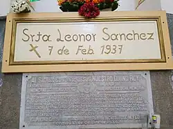 - «La Mártir Leonor Sánchez aquí reposa en paz ¡Acuérdate de nosotros en el cielo donde moras! Murió en el señor el 7 de febrero de 1937. Orizaba agradecida R.I.P.»