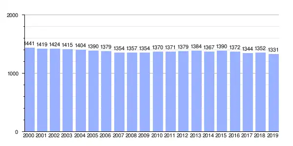 | Gráfica de evolución demográfica de Lesón (lugar) entre 2000 y 2019 |