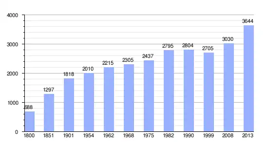 | Gráfica de evolución demográfica de Les Abrets entre 1800 y 2013 |
