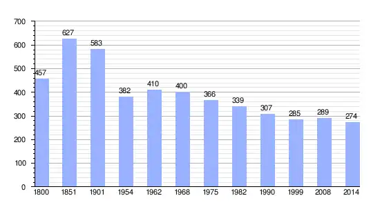 | Gráfica de evolución demográfica de Les Alleuds entre 1800 y 2014 |