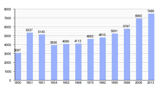 | Gráfica de evolución demográfica de Les Avenières-Veyrins-Thuellin entre 1800 y 2013 |